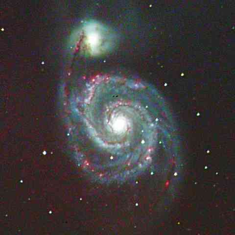 M51 というのは渦巻型をしている大きなほうです。その昔、フランス人のシャルル・メシエという人が彗星捜索の際に紛らわしいものを予め排除しておこうとカタログ化したときの記号です。全部で110個あります。