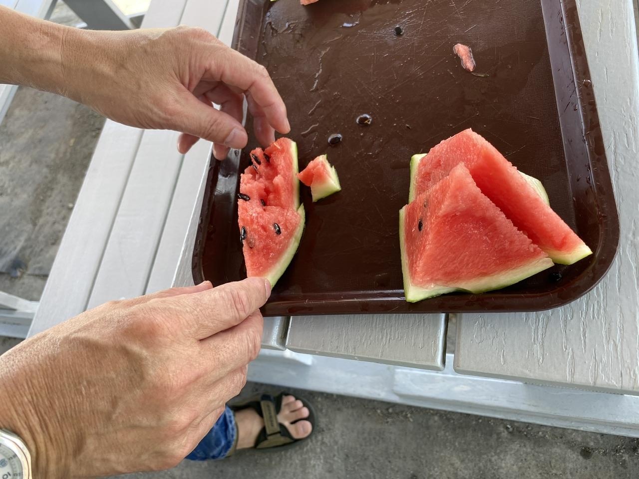 でも今日は特別!新潟からいただいた美味しいスイカです。