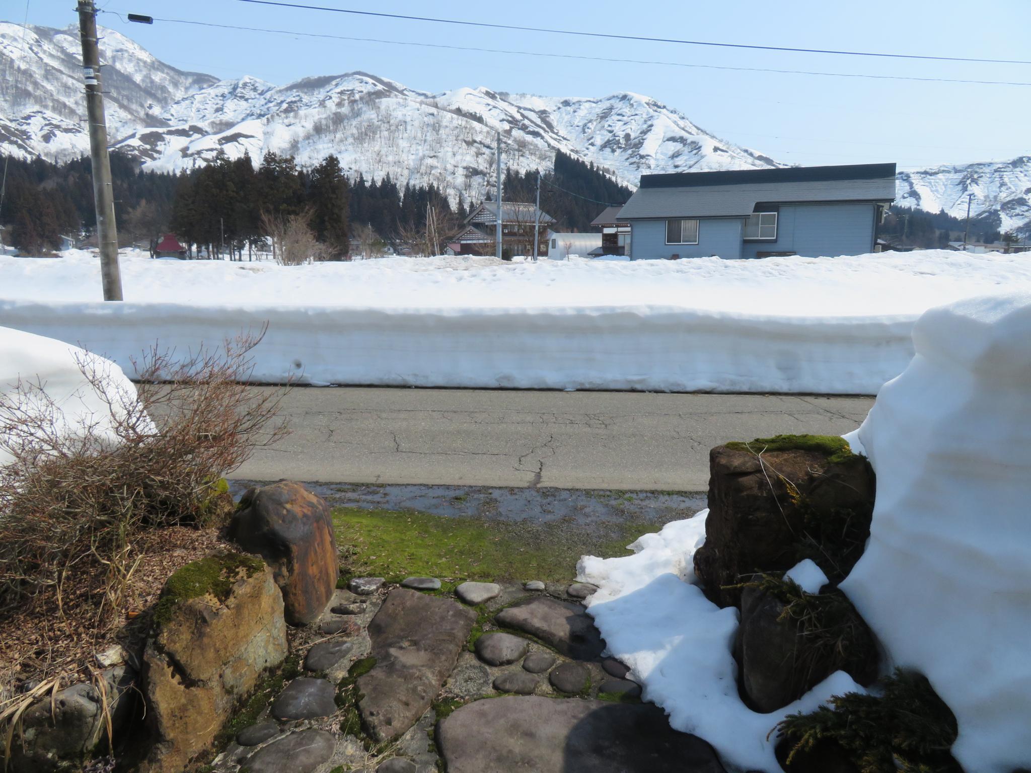 須原山頂はまだ2m以上も積雪があります、麓でも160cm程あります、スキー場も春の雪質になり黄砂が混じり昼頃には滑りづらくなってきています、冷えた朝はスキー場も雪面が凍って滑りやすくなります雪上フライトもチャンスが増えてます、写真は自宅玄関前です。