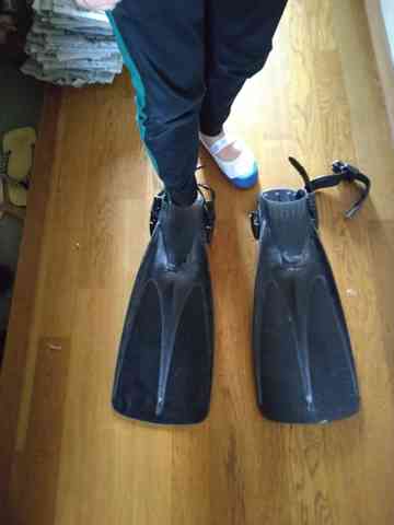 私の足ヒレは、盗られてしまい亡き妻の足ヒレを使ってかずまに(^_^)