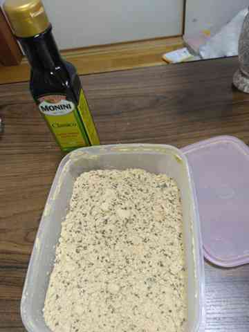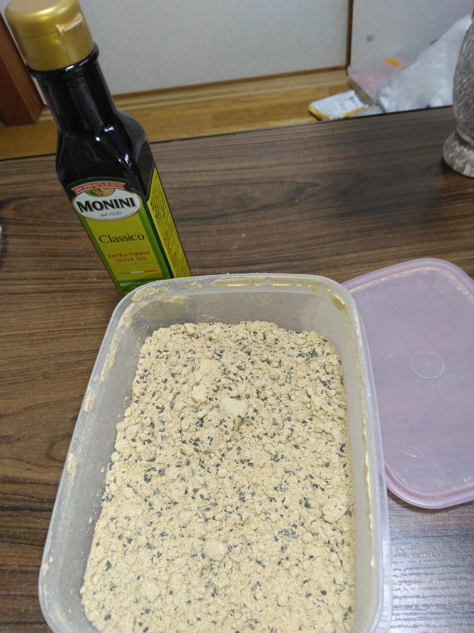 食パンにオリーブオイル(エキストラバージンオイル)をつけてから我が家流ザータルをつけます(*^_^*)
