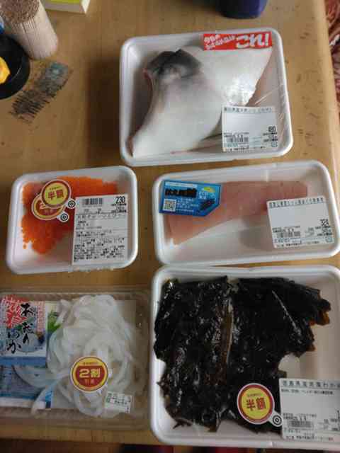 風呂から出て来たら、ブリのかまの塩焼きとなんちゃって海鮮丼\(^o^)/