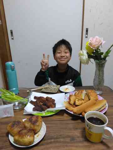 今朝は、昨夜のからあげと🍙を焼きおにぎり🍙に(*^_^*)