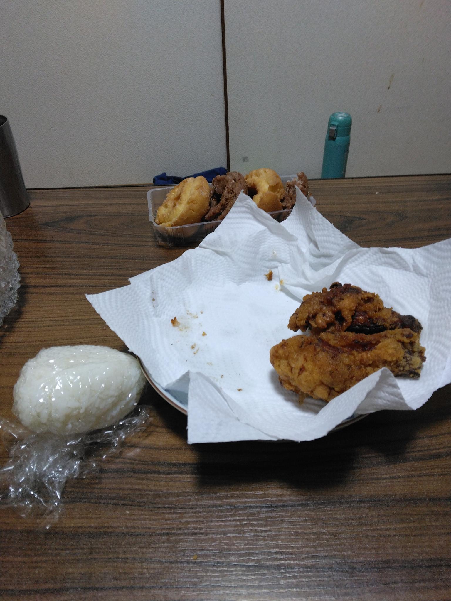 私の昼ごはんは、おにぎり🍙と鶏の唐揚げで、決まりだな(。>ω<。)