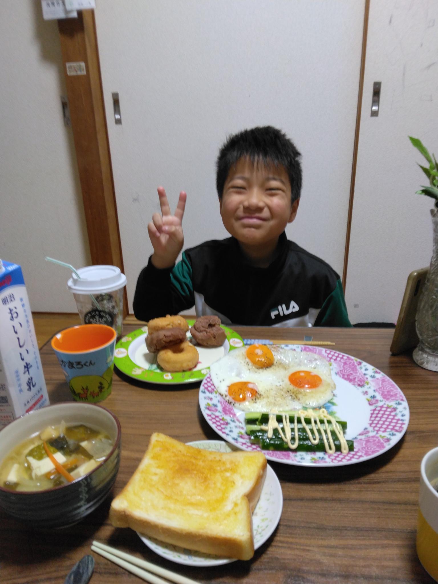 今朝は、ドーナツ🍩と牛乳が良いって(^_^)