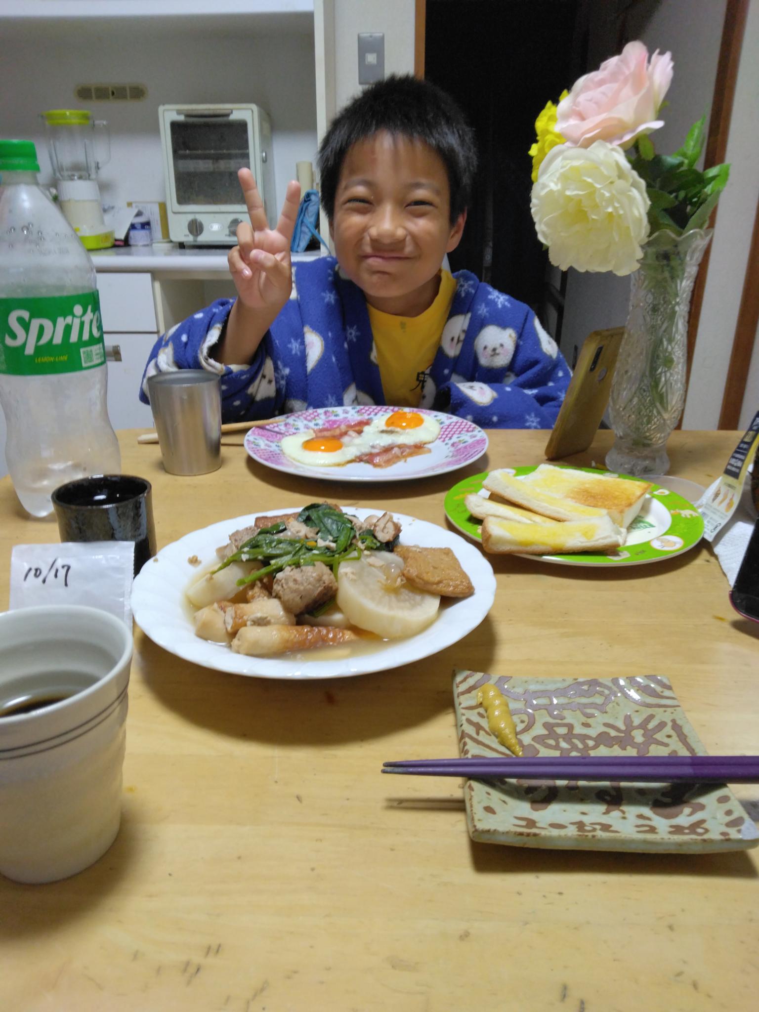 今日も一日、私たち家族の皆が平安と祝福の中で幸せいっぱい楽しく幸せいっぱいに過ごすことが続きますように感謝してこの食をいただきます。