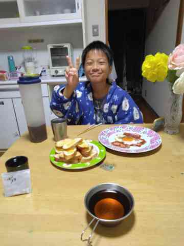 今日も一日、私たち家族の皆が平安と祝福中で幸せいっぱいに過ごすことが続きますように感謝してこの食をいただきます。
