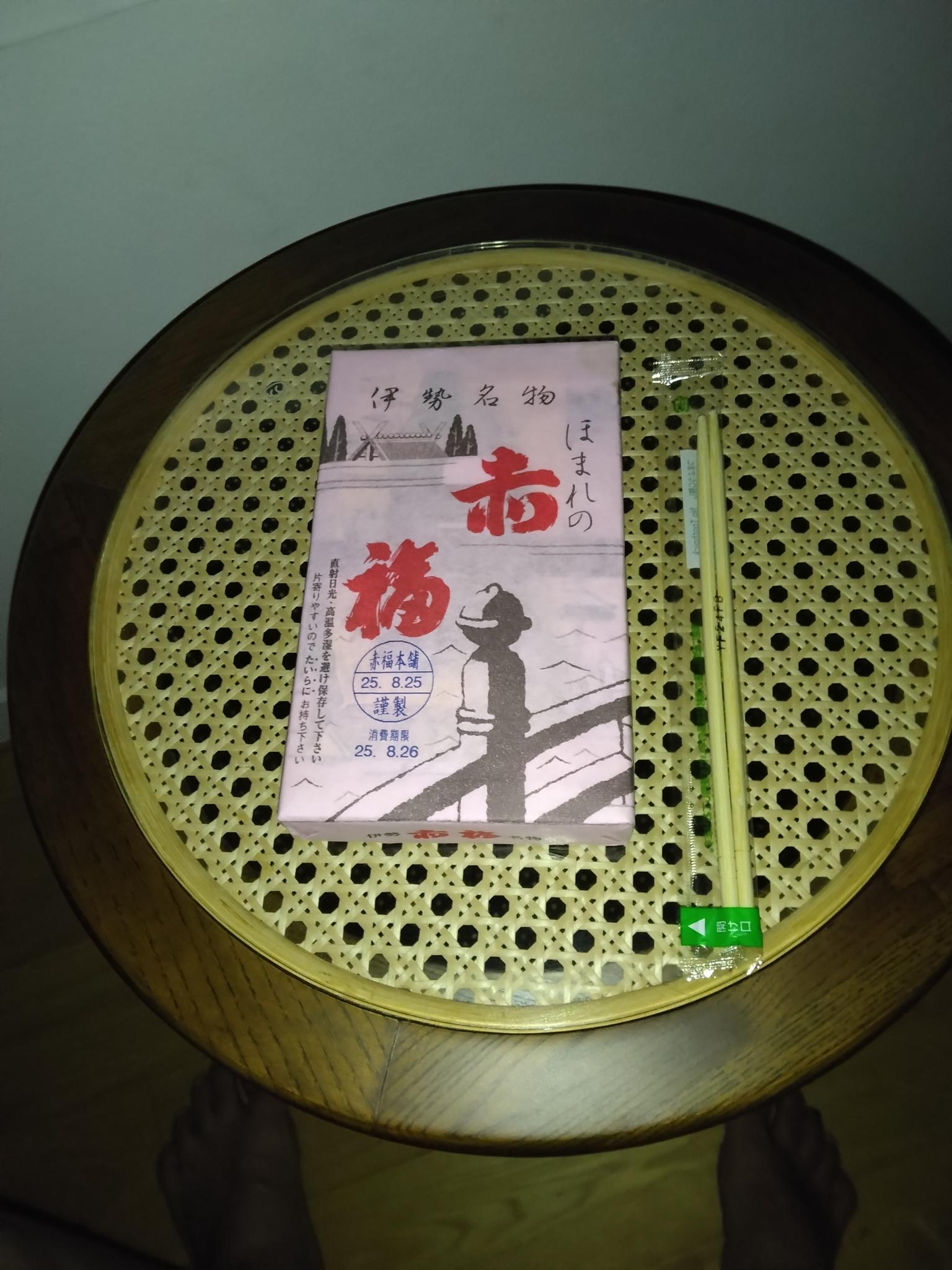 ホテルに入る前に「赤福餅」を買って居たのを思い出した(。>ω<。)