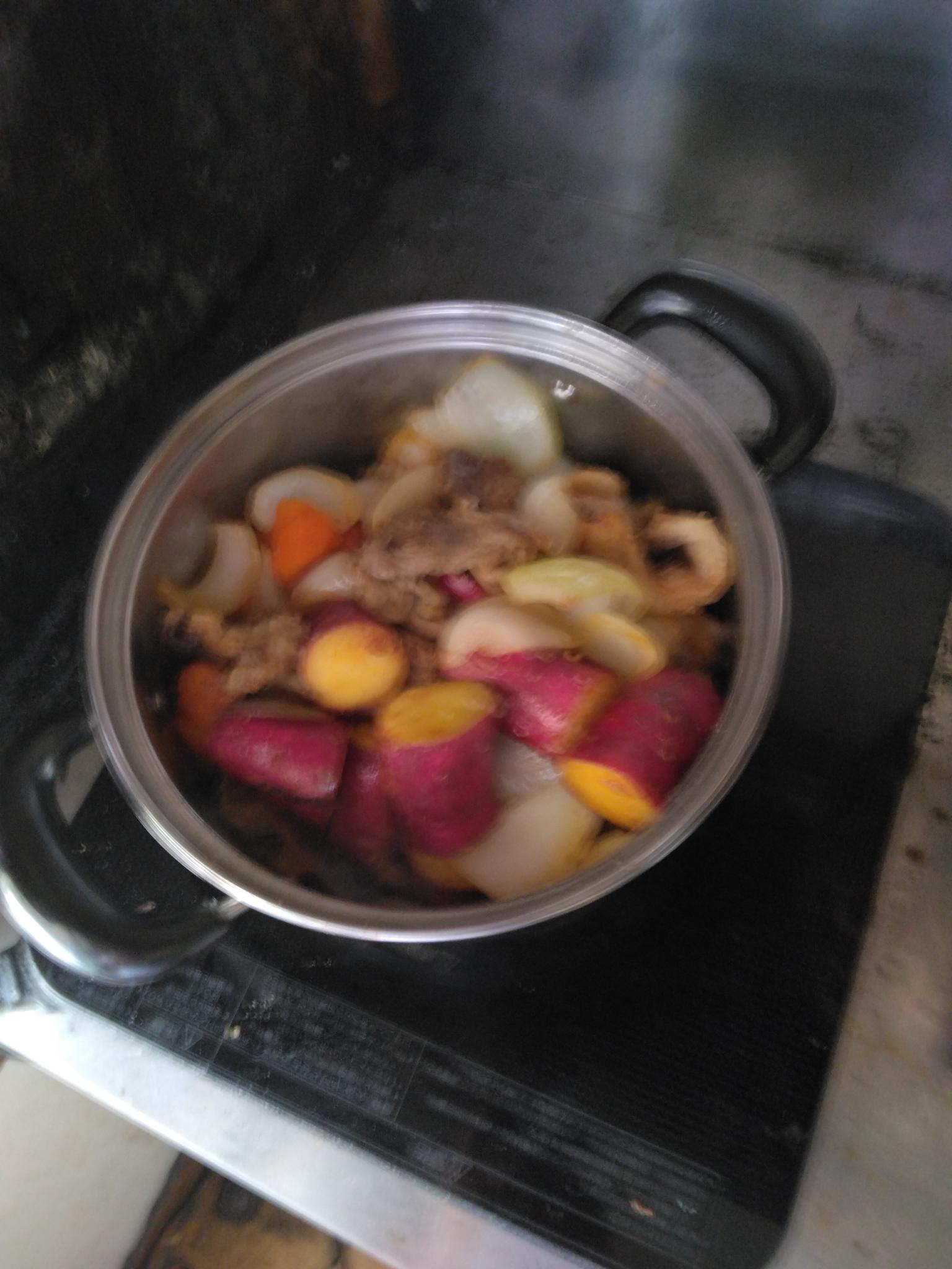 炒めにくいが玉ねぎがしなっとなるまで、火にかけます(^o^)