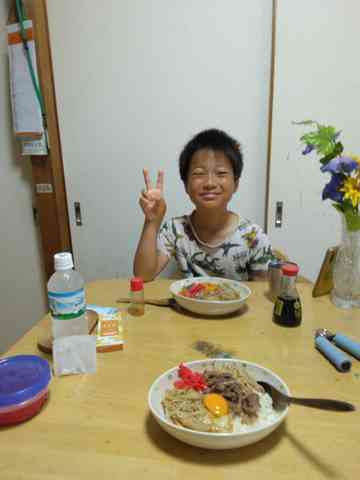 で、朝ご飯が「牛丼」具だくさんの\(^o^)/