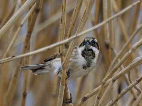 9月23日の早朝、ノビタキを観察していた時、川の中州のヨウシュヤマゴボウに止まる鳥がいました。ノビタキがこんなところに止まっていると思い撮影したのですが、よく見るとノビタキではなく、顔つきがオオヨシキリのようです。全体に褐色味が強く、白い眉斑と黒い過眼線がはっきりしません。すぐ下に潜ってしまい、それ以上観察できませんでした。
