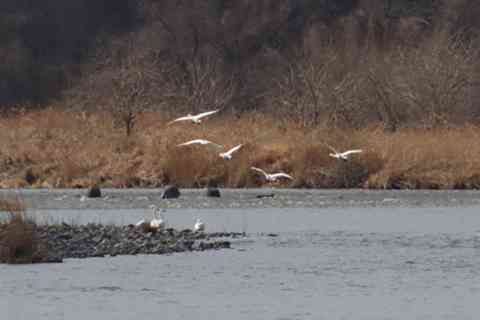 コハクチョウ4羽編成の群れで3月12日~20日間、滞在しました。