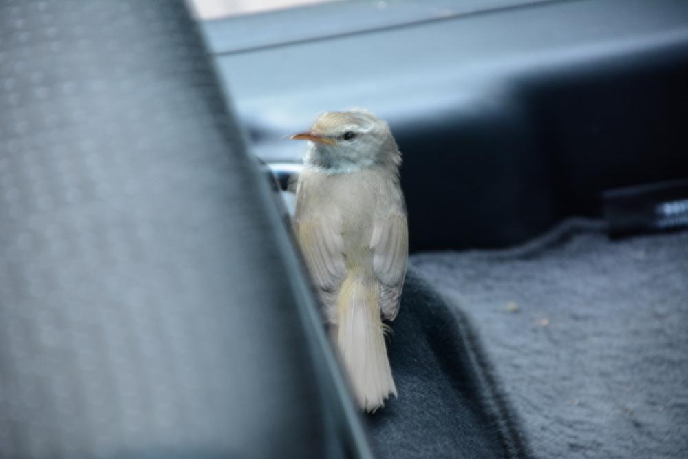 何とウグイスが車中に入っていたのです。