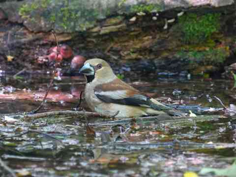 シメは夏季嘴の色が鉛色(グレー?)ですが、このように先端から根元に向かって黒くなっているのを初めて見ました。