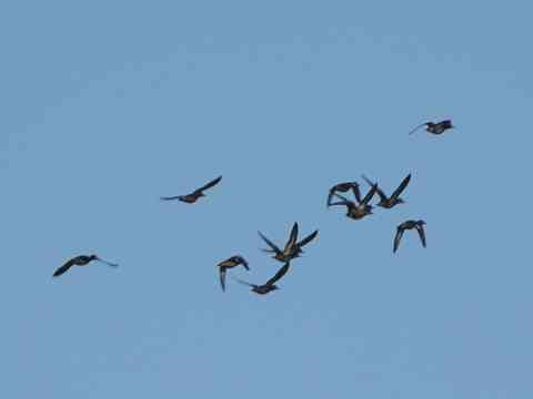 9月26日、高崎東部の新貯水池から飛び立ったカモです。いつもカルガモがいたのでカルガモと思っていました。画像を見たら違うように見えます。不鮮明ですが、ヒドリガモでしょうか?