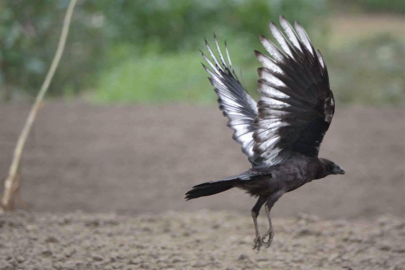 千葉の友人から送られてきたハシボソガラスの画像です。カササギっぽく、奇麗なので、友人の許可を得て、投稿します。今年のヒナで、親の後を追いかけていたそうです。