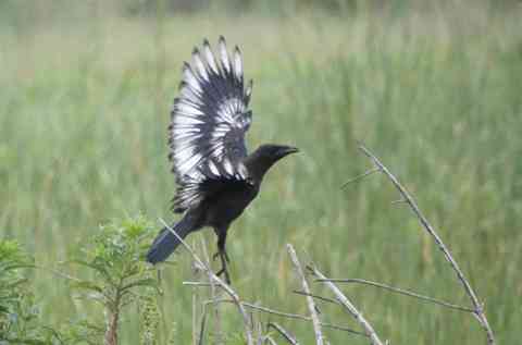 千葉の友人から送られてきたハシボソガラスの画像です。カササギっぽく、奇麗なので、友人の許可を得て、投稿します。今年のヒナで、親の後を追いかけていたそうです。