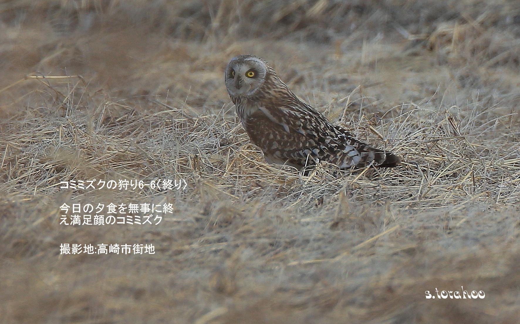 今年のコミミズクの出現は県内外とも、特に良いようです。投稿の場面は近年の作になりますが高崎市街地内でコミミズクの貴重な狩り場シーン(連続6枚)を捉えた画像です。宜しくです。