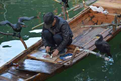 2017年12月に蘇州に行く機会があり、同里古鎮の運河で鵜匠(観光用)に出会いました。
