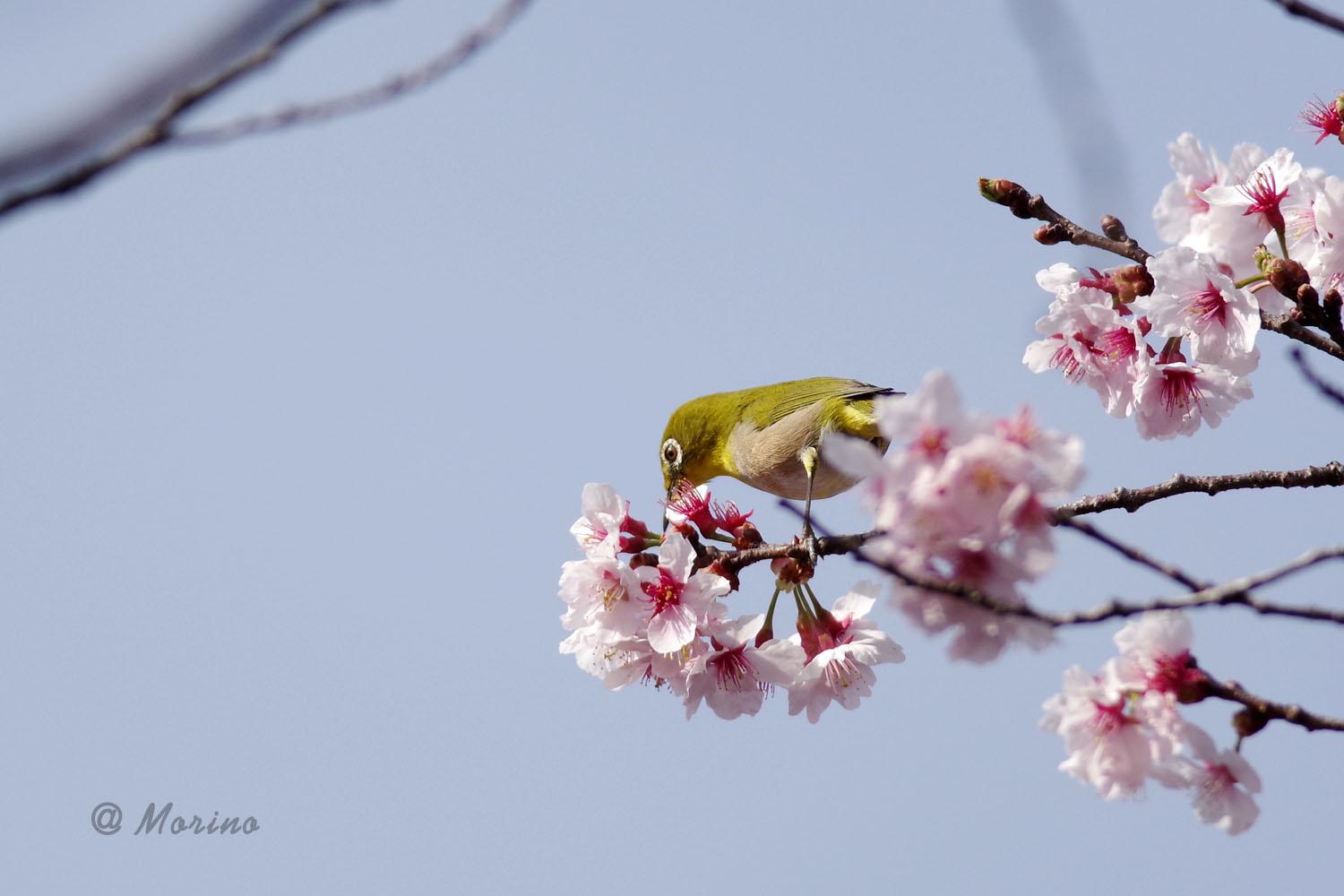 サクラの時期メジロは可愛いですね、動きが速く追いかけに