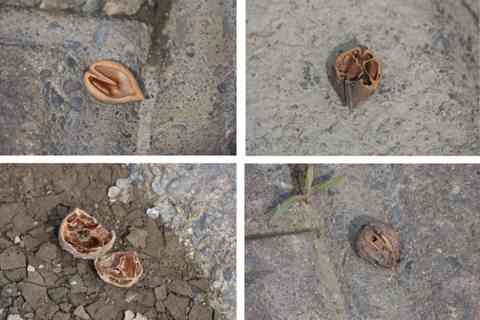 20m×150mの範囲に70個くらいの欠片が落ちていました。クルミとしては15〜20個くらいでしょうか。