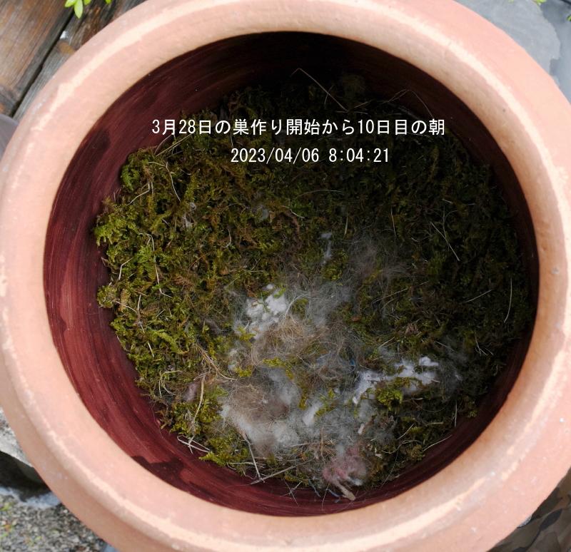 シジュウガラ巣作り10日目の朝。