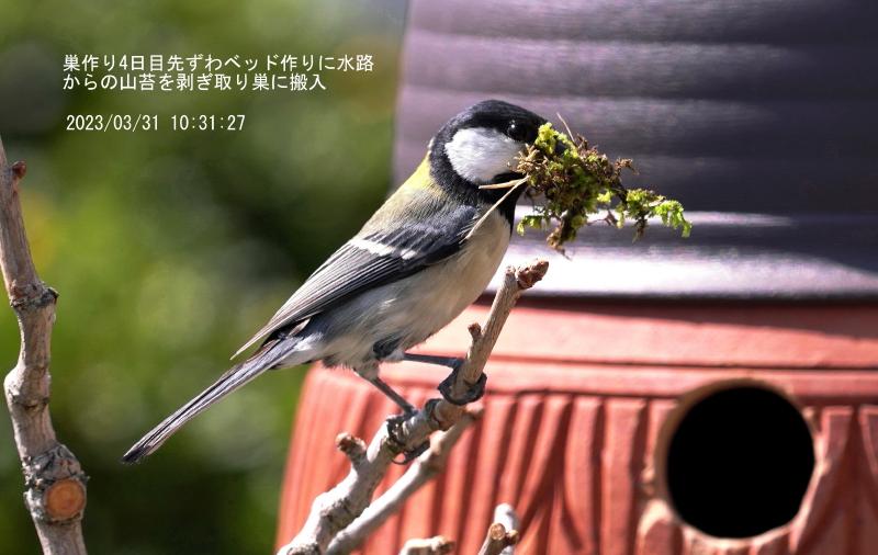 3月31日、シジュウガラ巣作り4日目