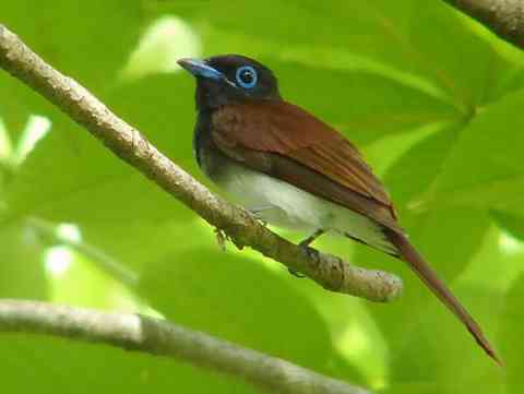 私も少ないサンコウチョウ体験から、次のように単純化した「雄の成長過程」を夢想していたことがあります。「幼鳥⇒若鳥(背茶・短尾)⇒成鳥(背黒・長尾)」