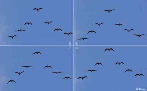 湖では時期的にガン・カモ類が沢山みられ、上空をV字飛翔する様子を1秒間に8枚連写、スライ