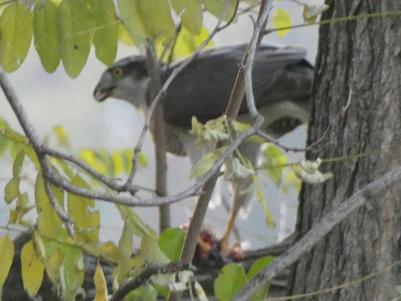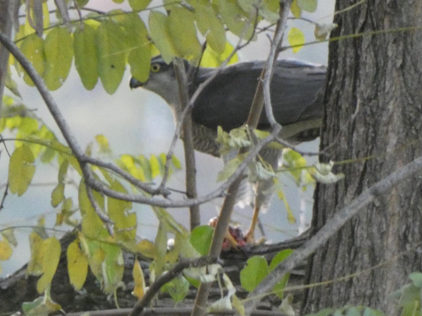 オオタカさんが獲物を捕えて飛び立ち後を追うと、獲物を食しておりました。