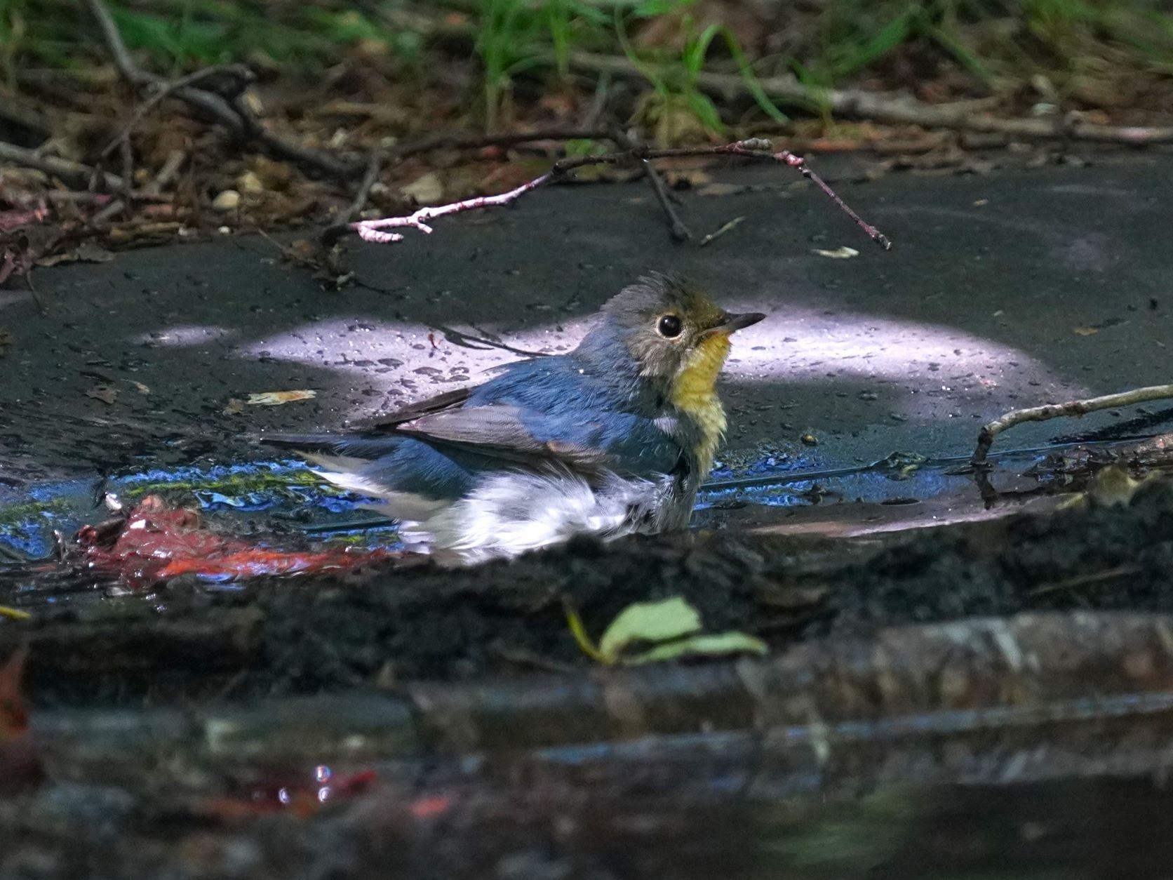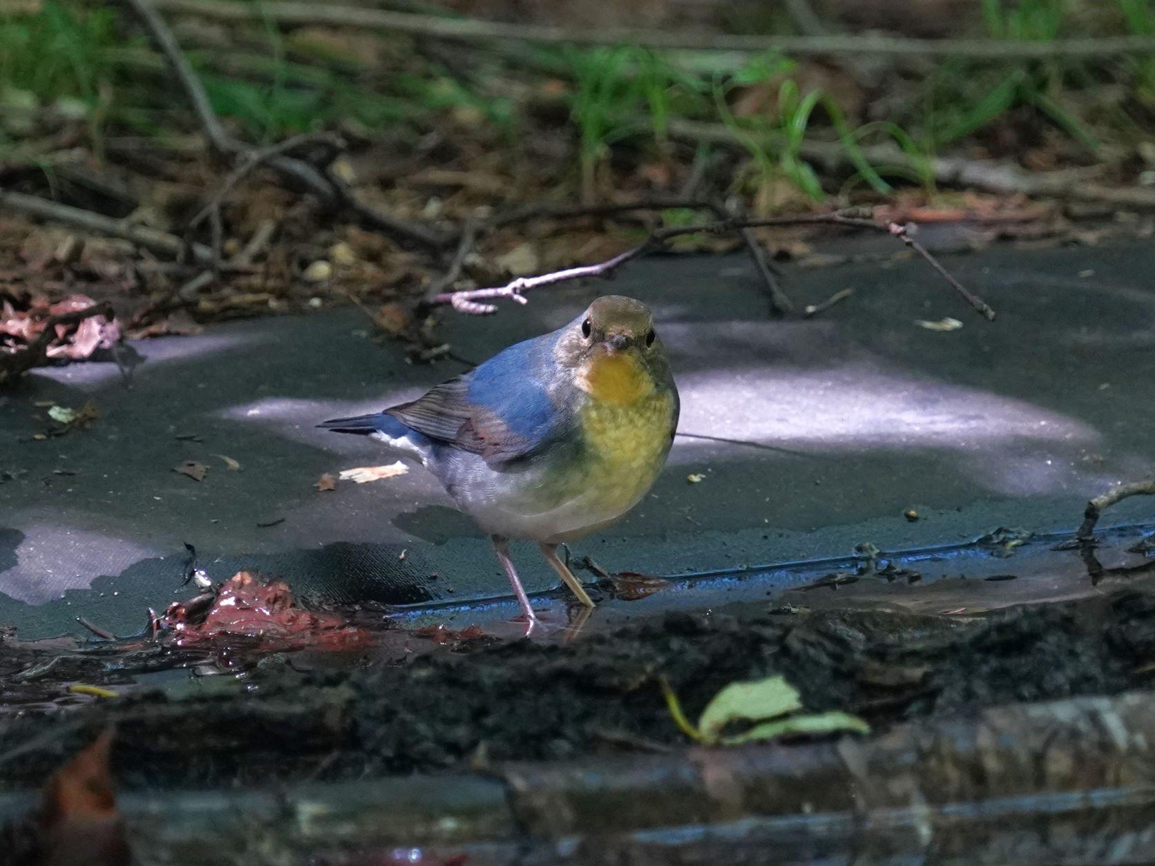 暫し観察・撮影に出られなかったため久々の投稿になります。お山の森の水場にコルリ幼鳥が突然現れ慌ててシャッターを切りました。とても暗い現場でISOを上げてもブレ気味です。