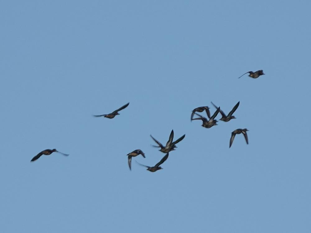 9月26日、高崎東部の新貯水池から飛び立ったカモです。いつもカルガモがいたのでカルガモと思っていました。画像を見たら違うように見えます。不鮮明ですが、ヒドリガモでしょうか?