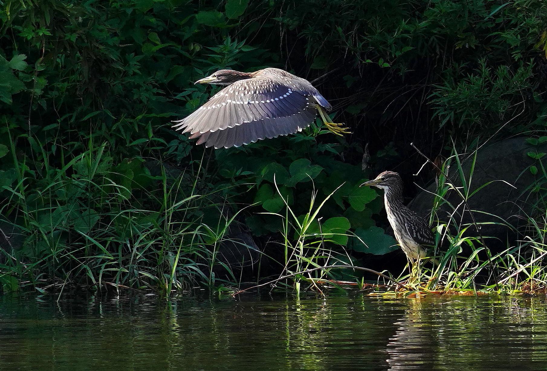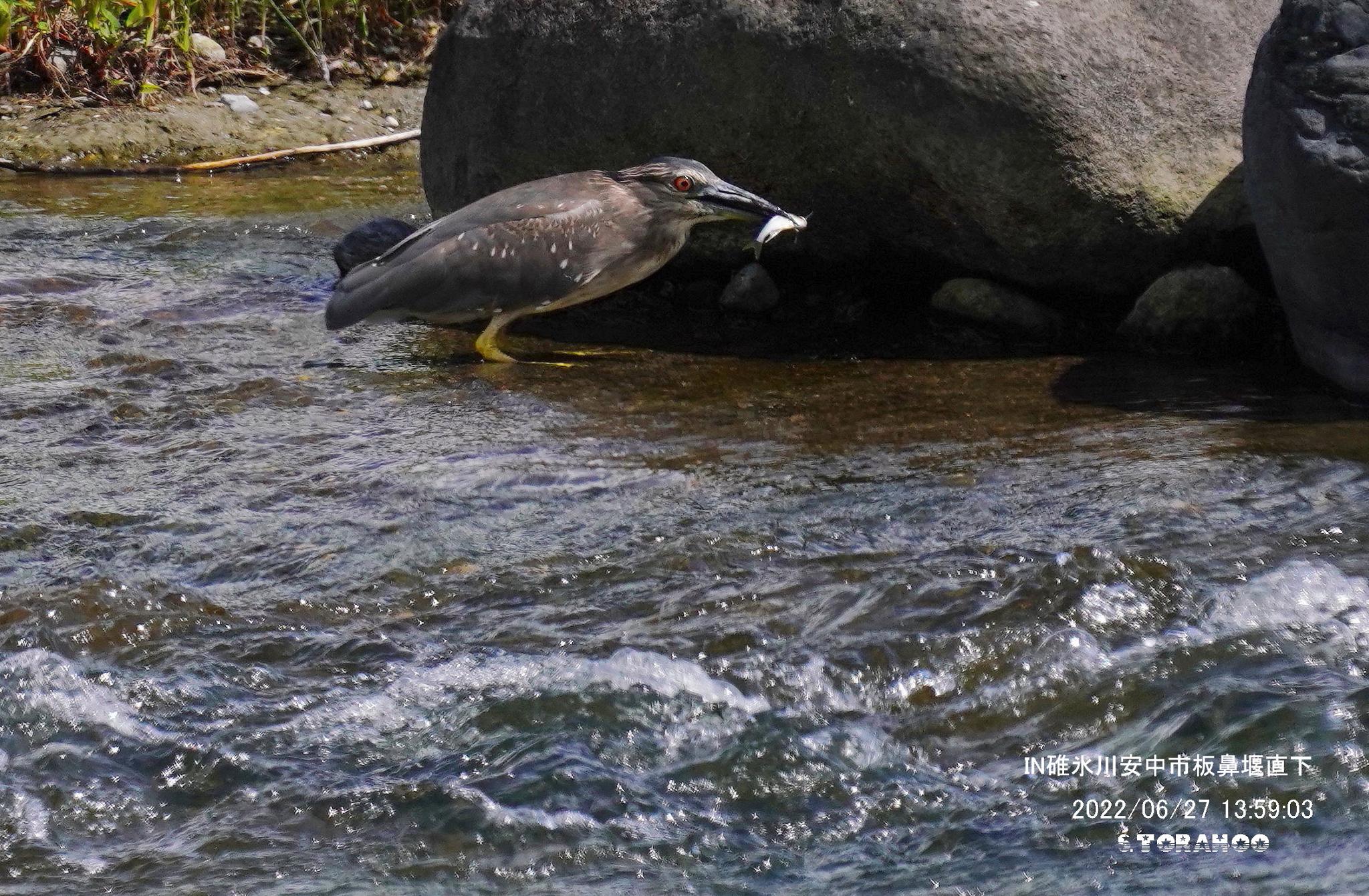 安中市碓氷川の板鼻堰周辺で、例年ながら今年もしっかり繁殖したゴイサギの幼鳥ホシゴイ兄弟が餌捕り行動で活発に飛び回る姿を捉えた映像です。動画餌捕りの瞬間撮影では、鳥さんも撮る側も汗だくで互いにチヤンスを待ち続ける長時間の根比べでして、撮影では約1分間刻みの分割で数十回を片目でファインダーを覗きっぱなしの連続稼働、数日間続けた結果でした。