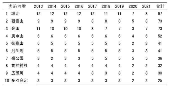 探鳥会開催回数ベスト10です!