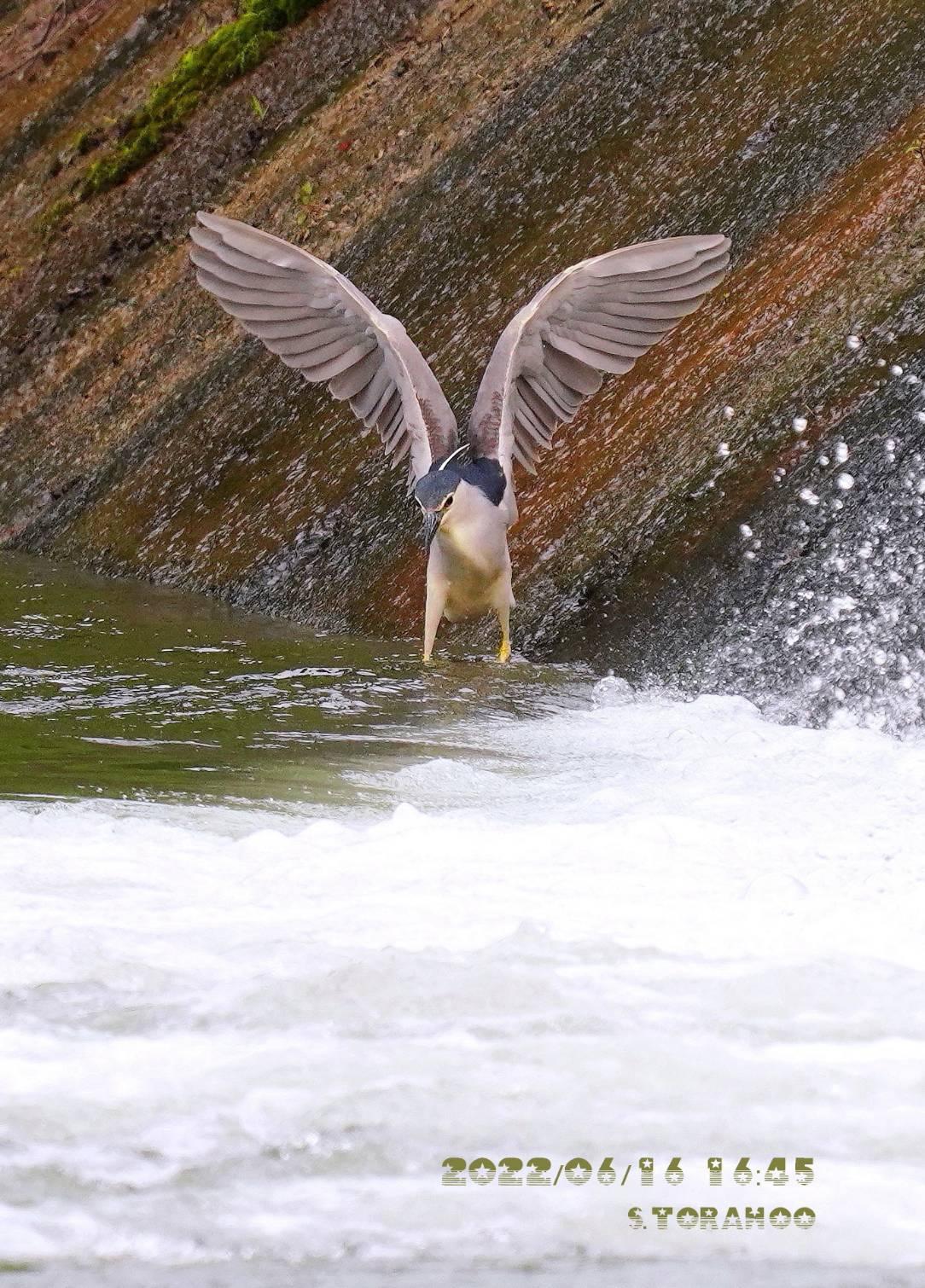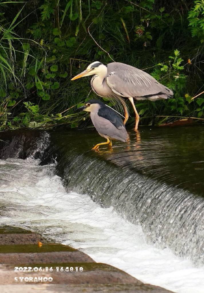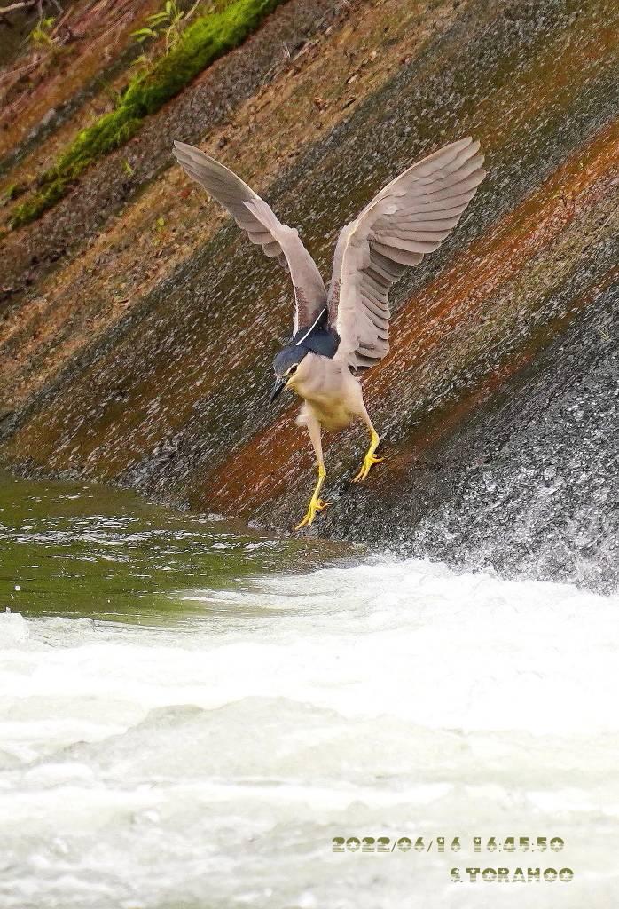 昨日の夕方、碓氷川でゴイサギが魚を狙っていました。