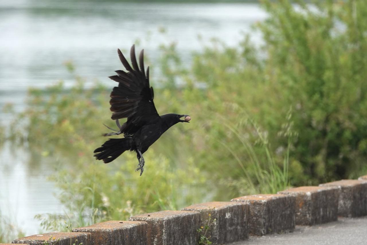 渡良瀬遊水地のハシボソガラスのクルミ割り文化は継承?されていました。