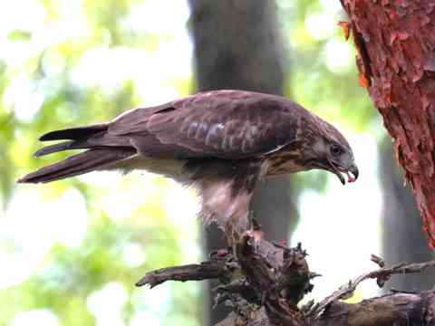 捕まえた後で松の木に舞い上がり食事を始めました。