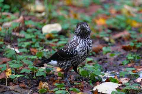 高山鳥のホシガラスですが、高所に適当な水場がないと標高を下げて水飲みにやって来るようです。ここは標高1300m位の森の中、水溜りに舞い降りてゴクゴクと水を飲み始めました。