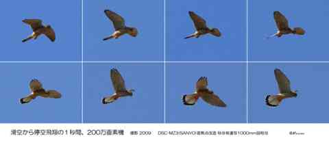 PCスライド用に処理していた画像に、チョウゲンボウの1秒間8枚連写画像、