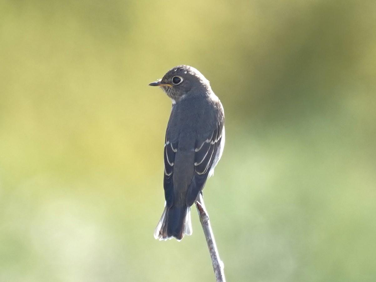渡り途中で一休み中のエゾビタキの中に混じっていた個体が、他のエゾビタキ達と違うように