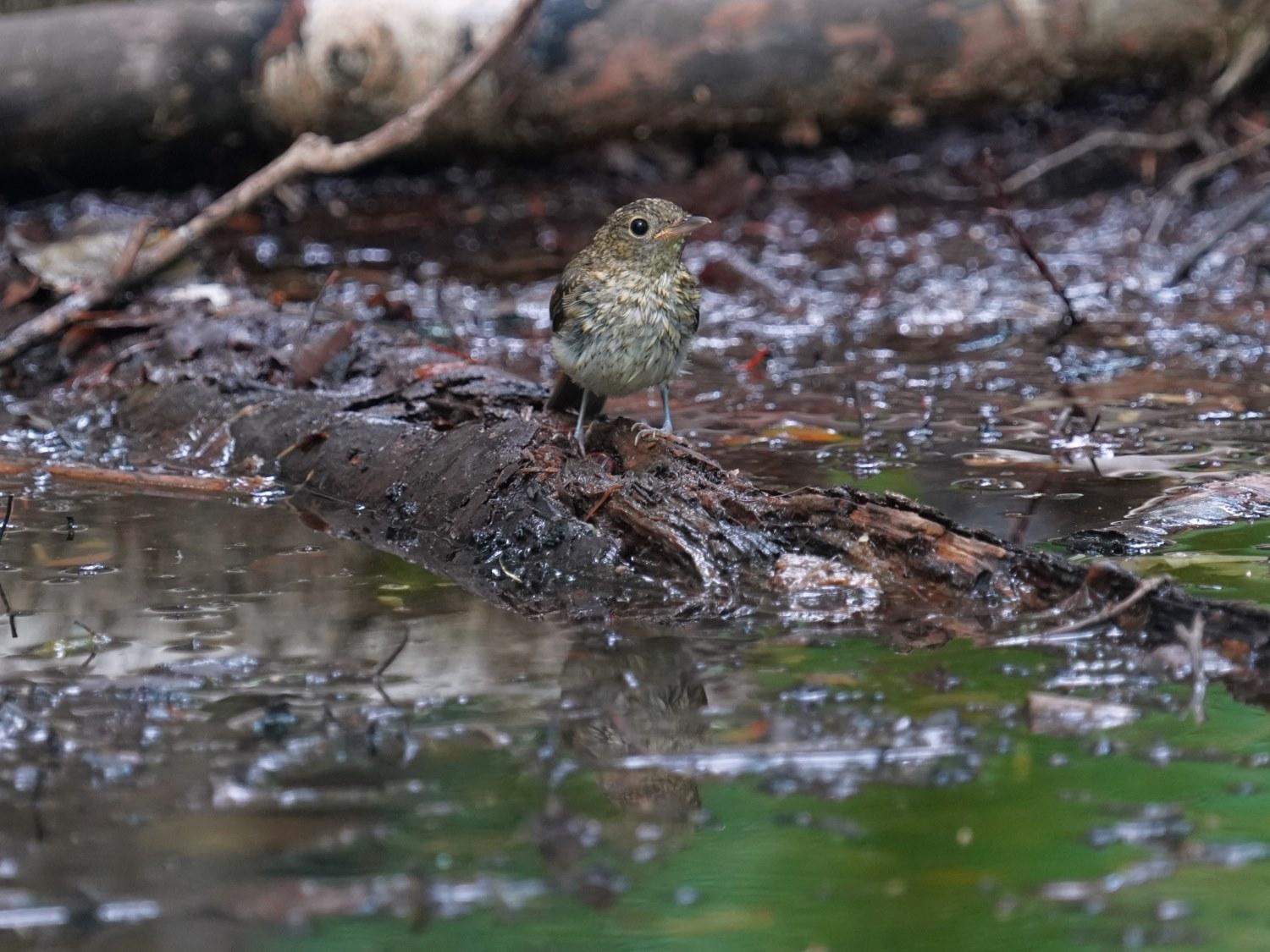 前記の水場に久々のオオルリ♀も現れました。
