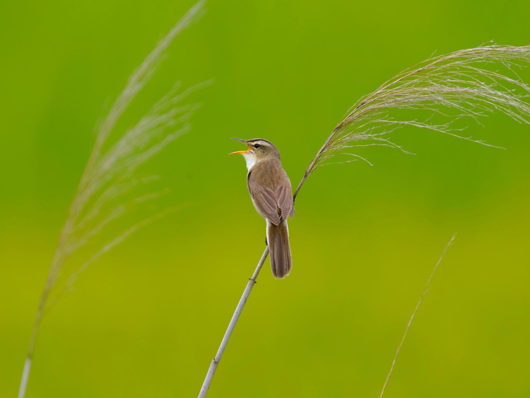 ひたすら一途に囀るコヨシキリは大好きな鳥さんです。初夏の葦原はバックの色が綺麗なので良いですね。