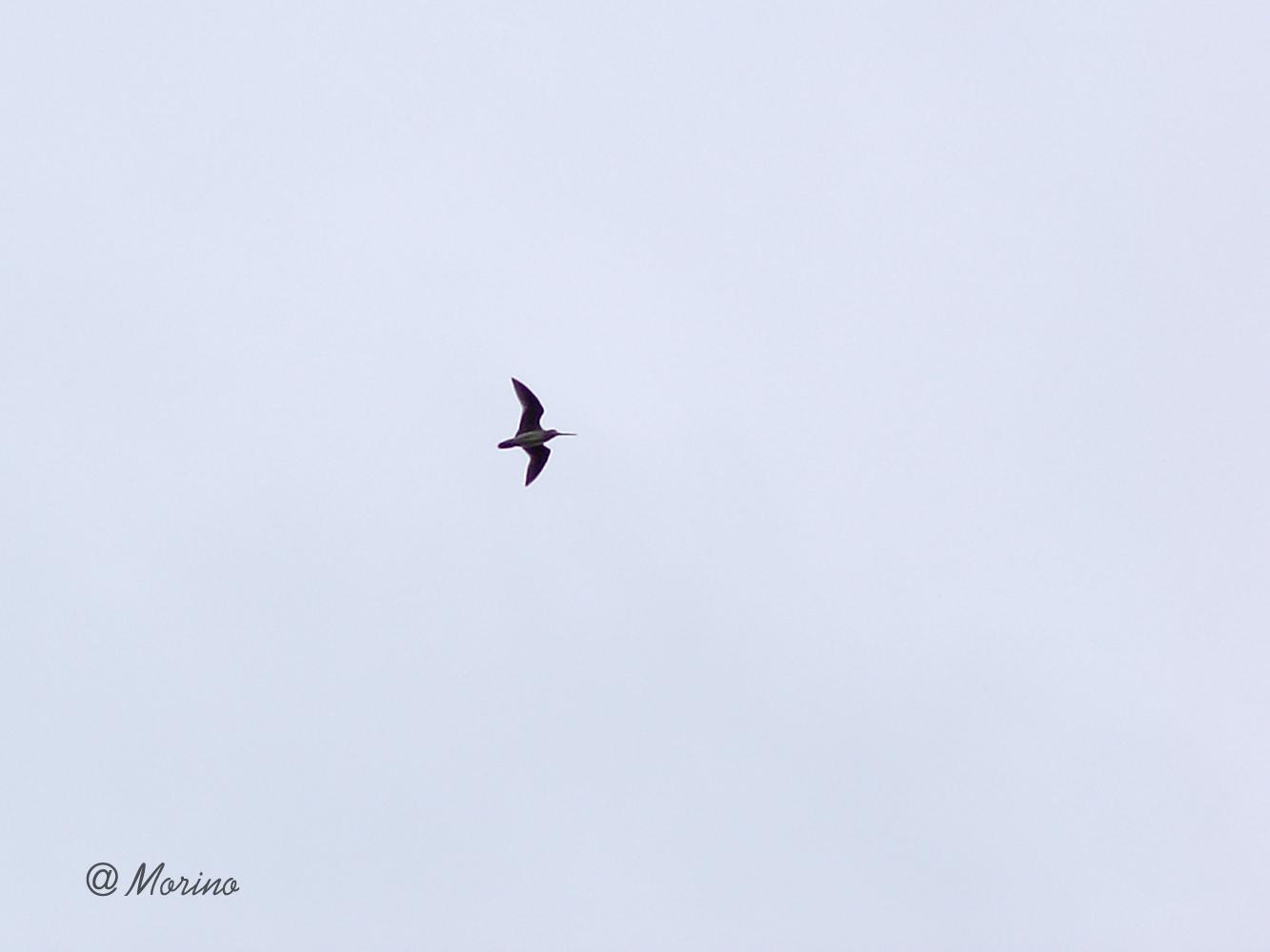 テリトリーの上空を飛翔するオオジシギ、両眼視手持追尾