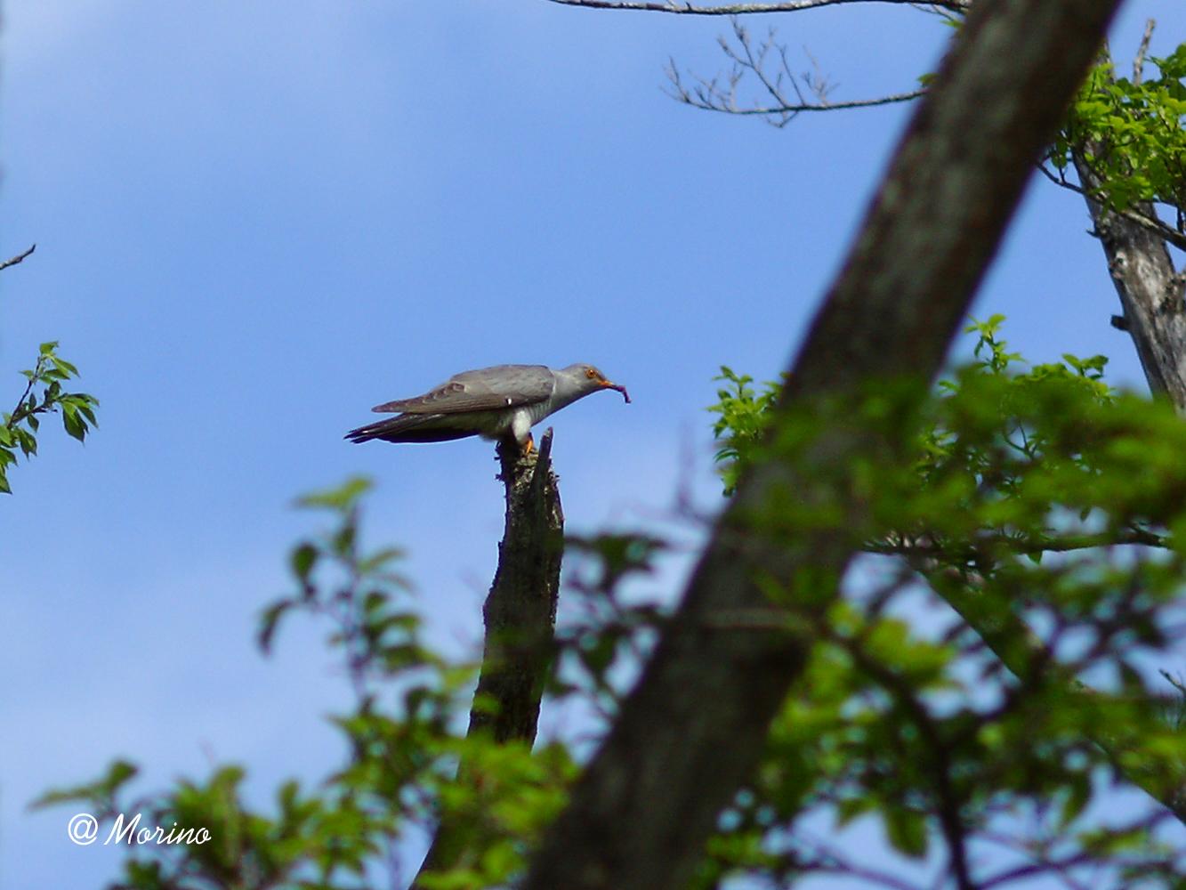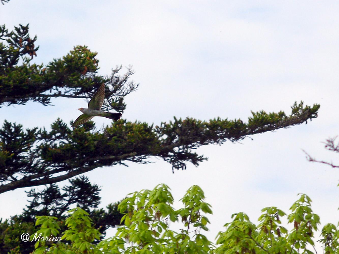 高原で鳴くカッコウです。曇り空なのがイマイチです。