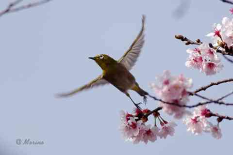 サクラの時期メジロは可愛いですね、動きが速く追いかけに