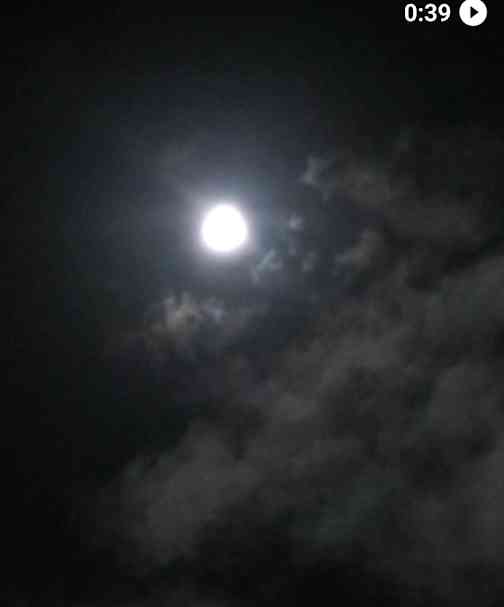 11時過ぎに雨が止んで雲が流れる隙間から満月が見えました。