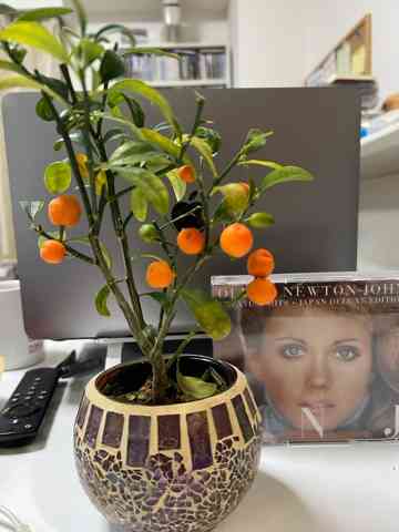 写真はうちの小さなミカンちゃんです。金豆(キンズ)という品種でカワイイ実をつけてくれますが食べられません(笑)。