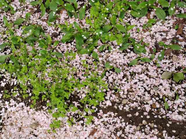 もうすっかり花びらは散ってしまったけど、地面に散った花びらもまたきれいなものですね
