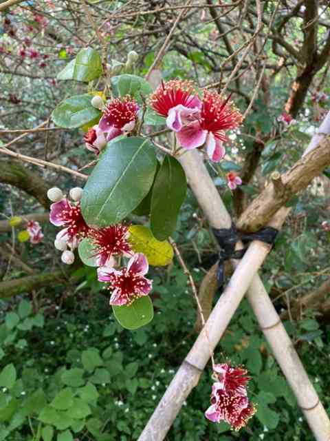 いよいよ本降りになって来ました。 そちらもやっと梅雨入りですね。 今回はこの一週間ぐらいで梅雨も終わるのではないかという感じがします。 最近は雨が降ればゲリラ雨で情緒ってえもんが無くなりましたね。 雨雨ふれふれもっと降れって悠長な事は、もう八代さんも言ってられないですね。 我が家のガーデンも花盛りになって来ました。 今年はフェイジョアの花も沢山咲かせています。 機会が有ればまた果実を送りましょうかね。 フレーフレーり・は・び・りーーーー