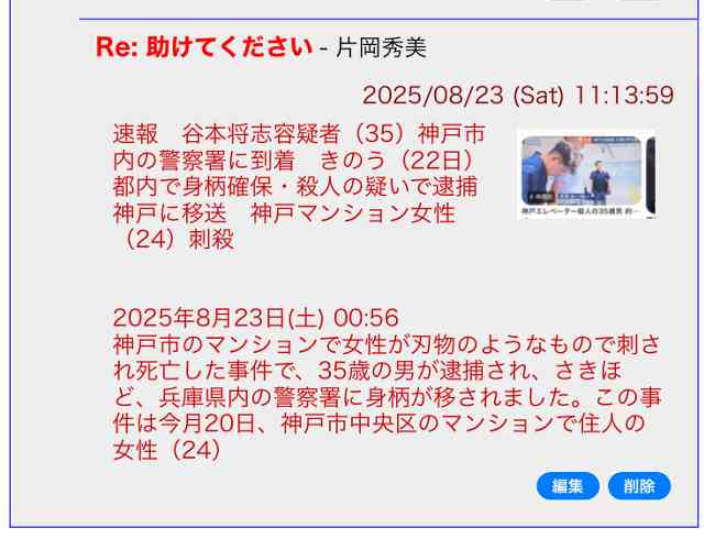 また、容疑者とみられる男が事件当日、帰宅途中の片山さんの後を50分間以上追っていたことも捜査関係者への取材で分かった。県警は片山さんとの面識の有無は「捜査で明らかにする」としており、動機や経緯の捜査を本格化させる。